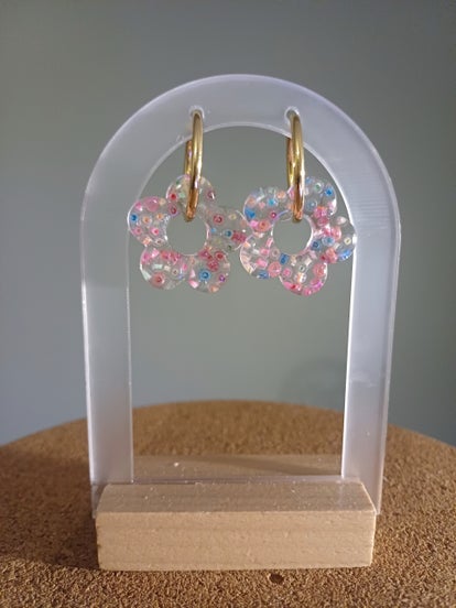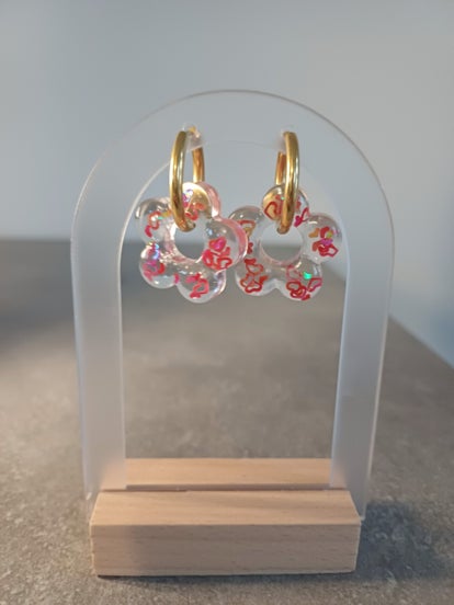 Fleurs 5 pétales noires avec imprimé léopard de couleurs