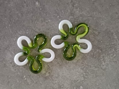 Grandes fleurs fines vertes olive et blanches