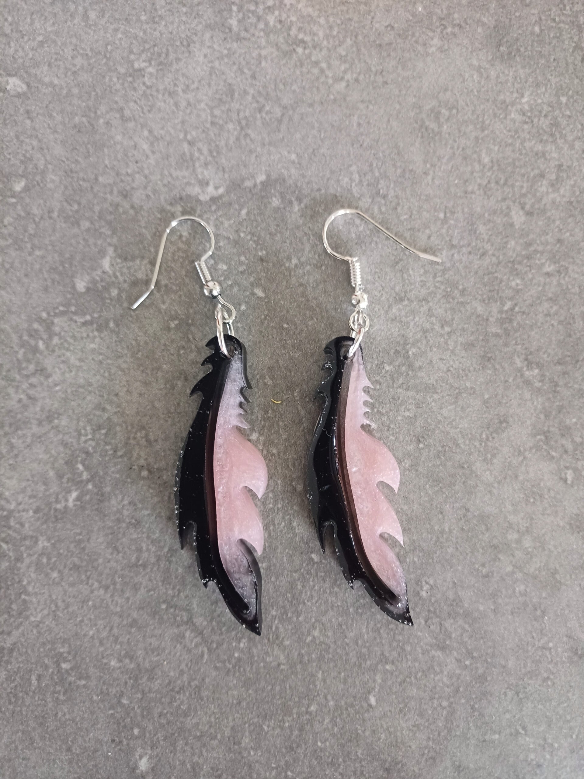 Plumes noires et roses avec attachés en crochets argentées