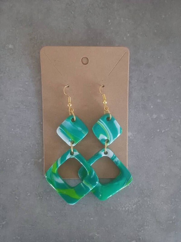 Boucles d'oreilles vertes en pâte fimo