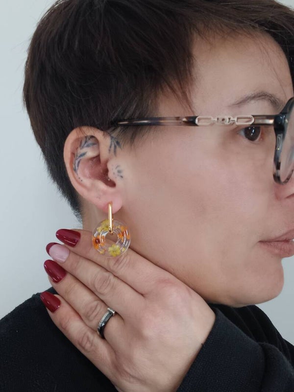 Donuts avec fleurs séchées intégrées jaunes et oranges