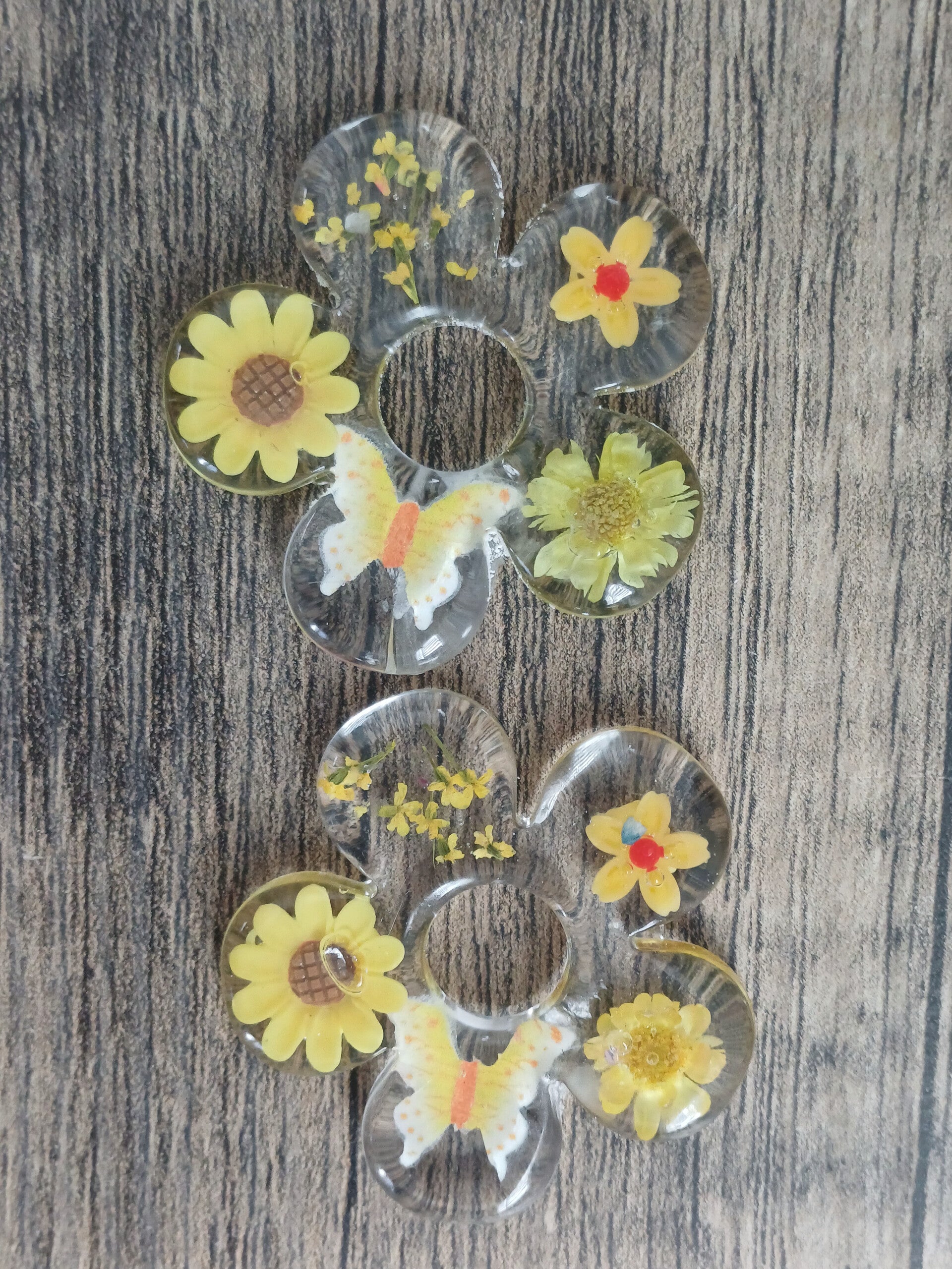 Grandes fleurs à pétales épaisses avec fleurs et papillon jaune