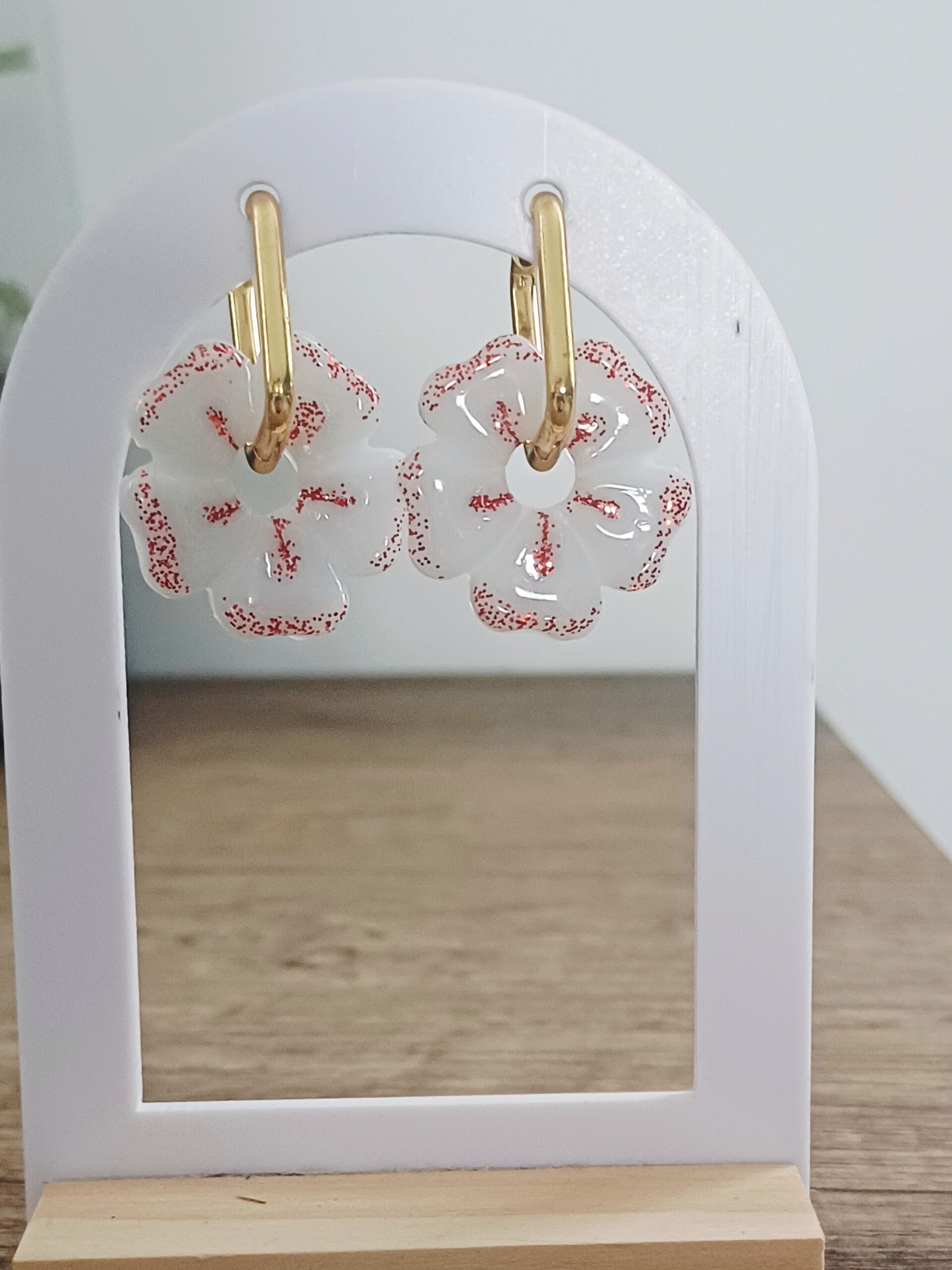 Florines blanches avec paillettes rouges