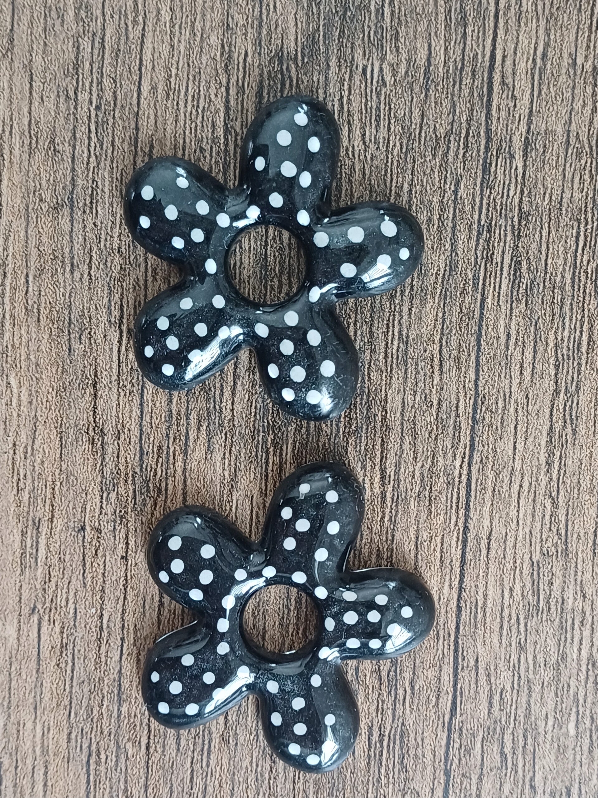Grandes fleurs noires a pois blancs