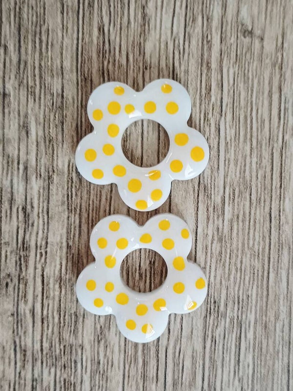 Fleurs 5 pétales blanches à pois jaunes